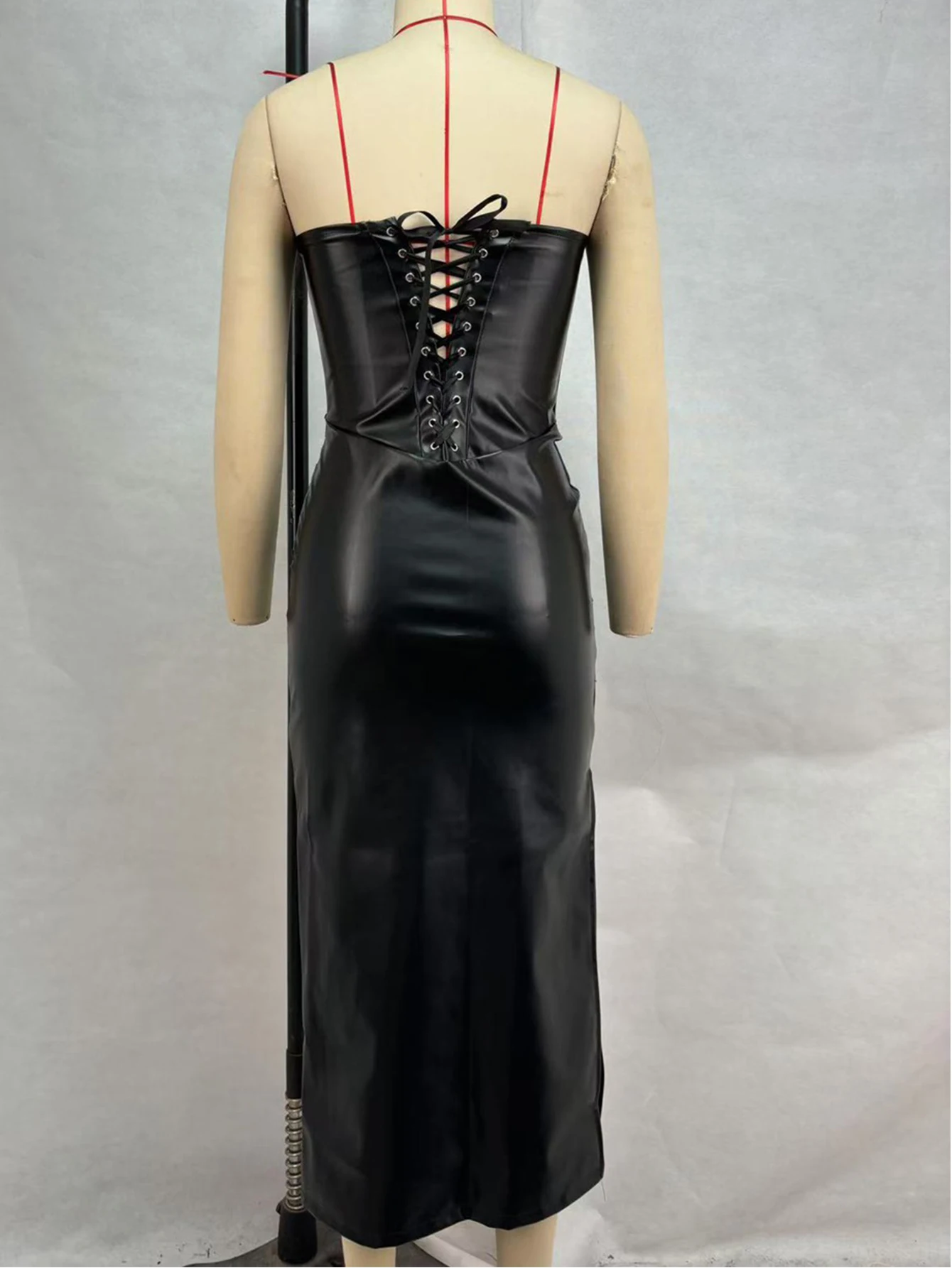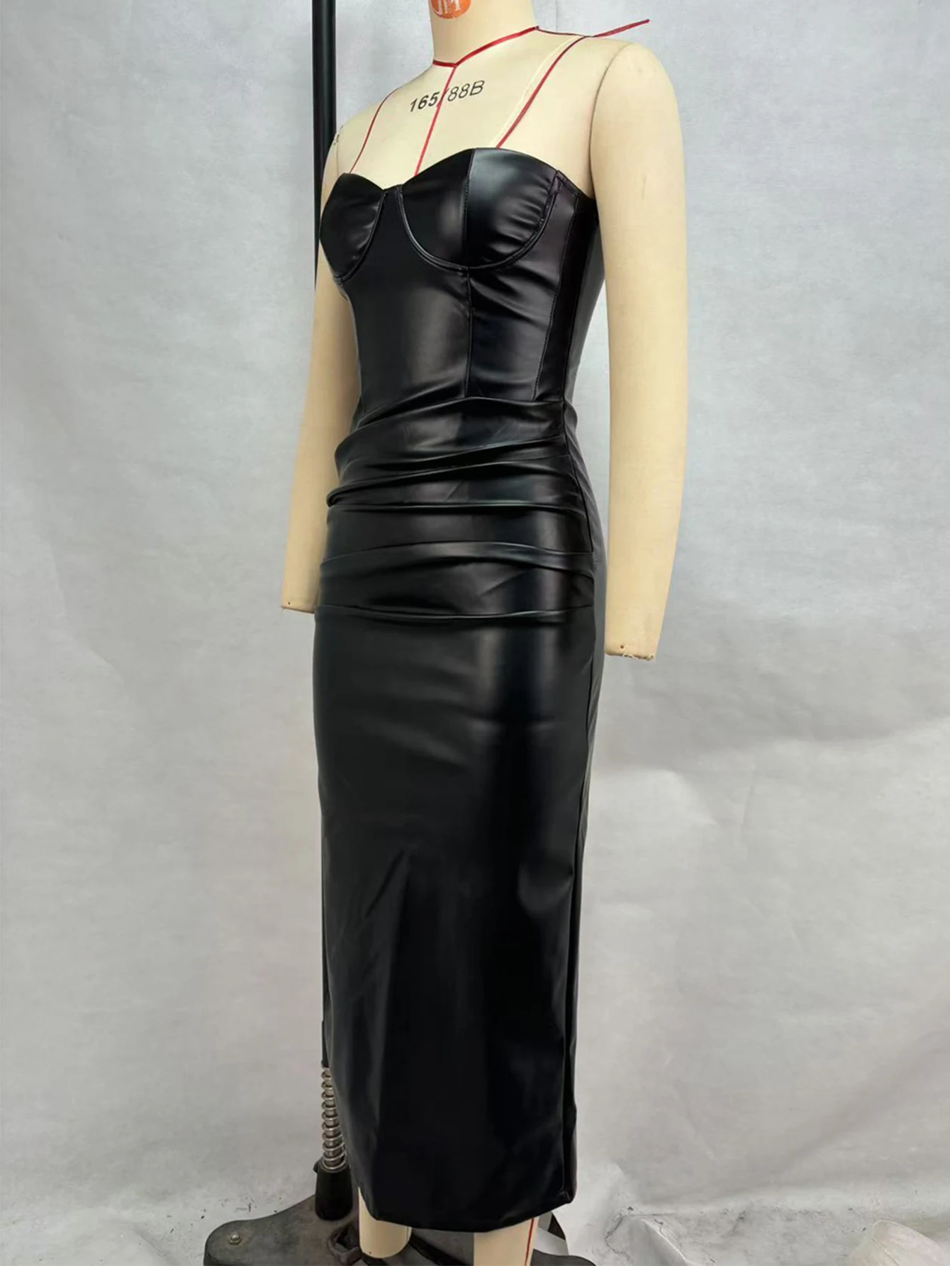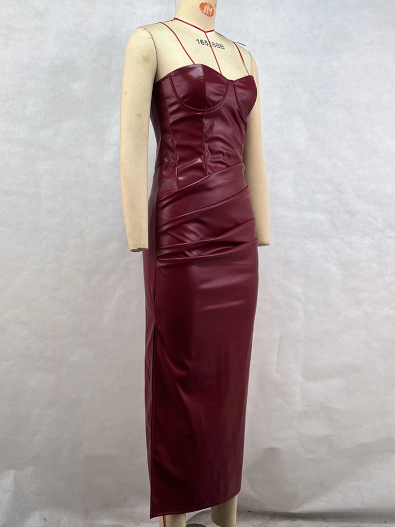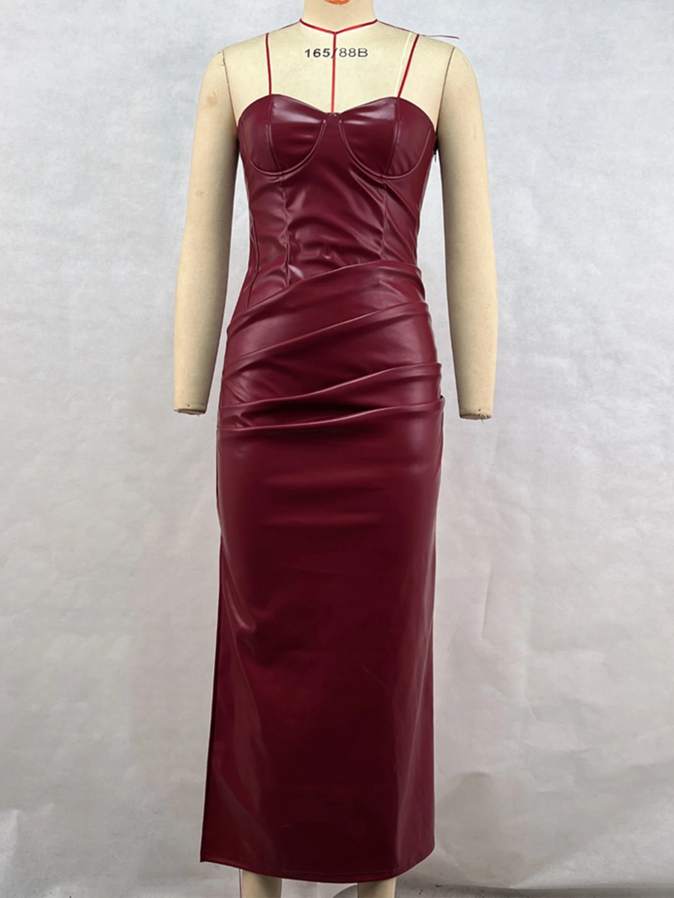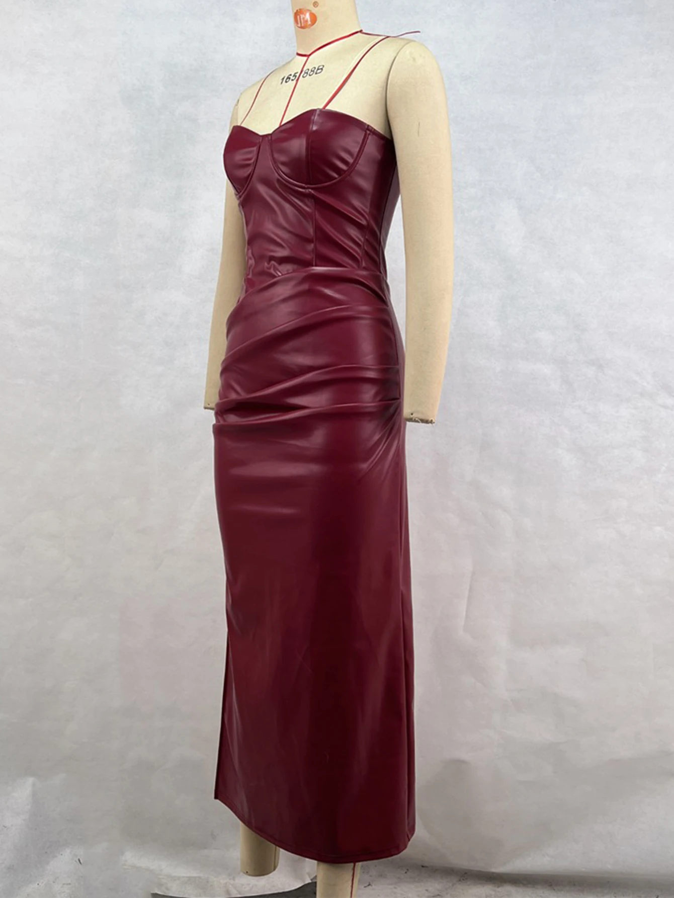 Crimson Sins est la robe qui attire tous les regards — une pièce sculpturale en simili cuir qui épouse chaque courbe avec précision et attitude.